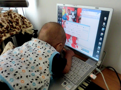 Menginjak dari 8 ke 9 bulan..tempoh sebulan ni yg paling mencabar aku rasa ..setakat ini lah..Somewhere in his 8 months dia tetibe hebat merangkak dan memanjat...sedangkan semalamnya masih struggle tergedik2 mengangkat punggung..dan bermulalah adegan jatuh terlentang,terhantuk dan sebagainye..hero la katekan..sesuka hati nak lepas tangan..isk..lps tu suke terlompat2 sampai tertanggal seluar..hahah.mmg menguji kesabaran betul lah..
